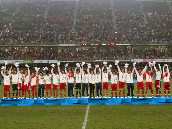 中国香港足球代表队由香港足球总会管理,虽然香港于1997年主权移交后属于中华人民共和国的一部分,但根据香港特别行政区基本法,香港仍被允许拥有自己的代表队,并冠以“中国香港”的名义参与国际比赛。1956年举办的首届亚洲杯足球赛,英属香港曾以东道主身份获得第三名。不过要说香港足球最高光的时刻,那一定是2009年东亚运动会上夺得金牌。