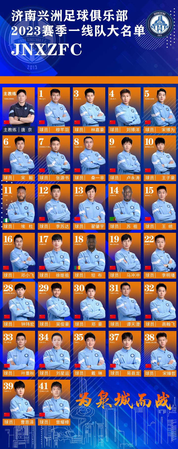 齐整之军,为泉城而战!济南兴洲2023赛季中甲大名单出炉