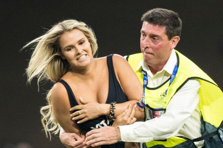 在那场欧冠决赛后,世界各大媒体和全球的球迷们都在关注这位奇女子。当时,这位丰满的金发女郎因她的特殊表演而走红,当时她衣着暴露闯入赛场黑色泳衣衣服上写着她男友运营的VitalyzdTv网络视频情色频道。