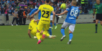 第23分钟,埃尔马斯传中,奥斯梅恩头球攻门,可惜顶得太正被奥纳纳没收。
