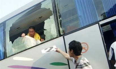 (图17)成都谢菲联的大巴被重庆球迷砸烂