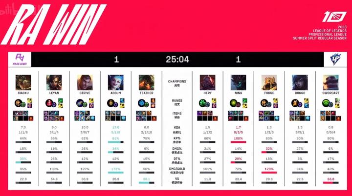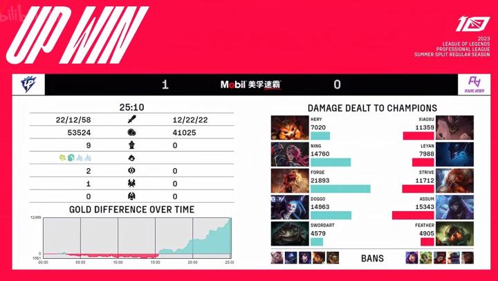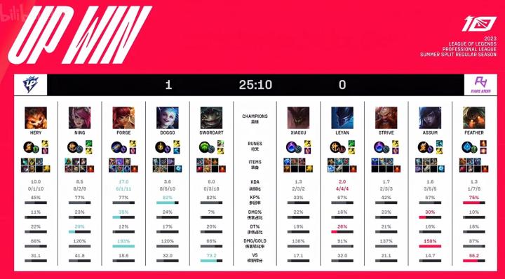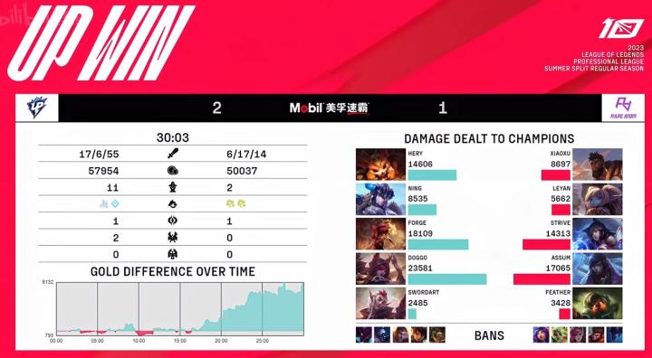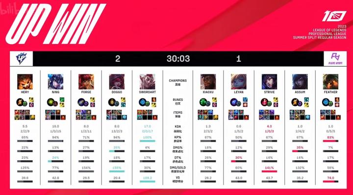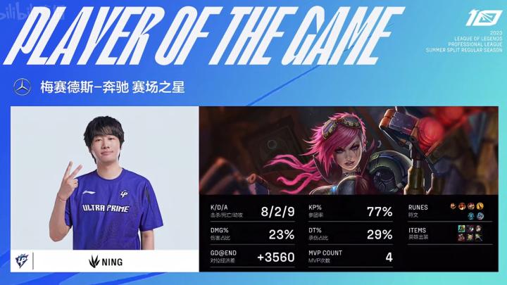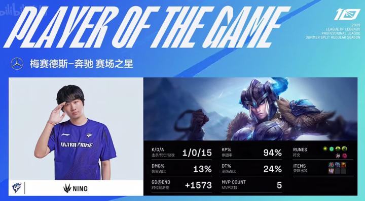 2023LPL夏季赛:UP 2-1 RA,Ning状态拉满收获二连MVP