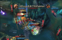 第25分钟,Forge安妮闪现大招命中三人,UP一路推平先下一城。