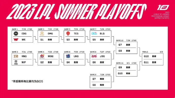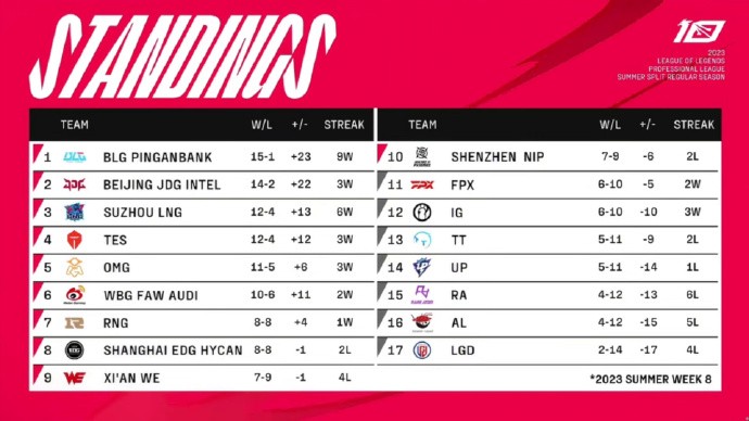 2023LPL夏季赛常规赛排名及季后赛赛程:20日17点EDG对战WE