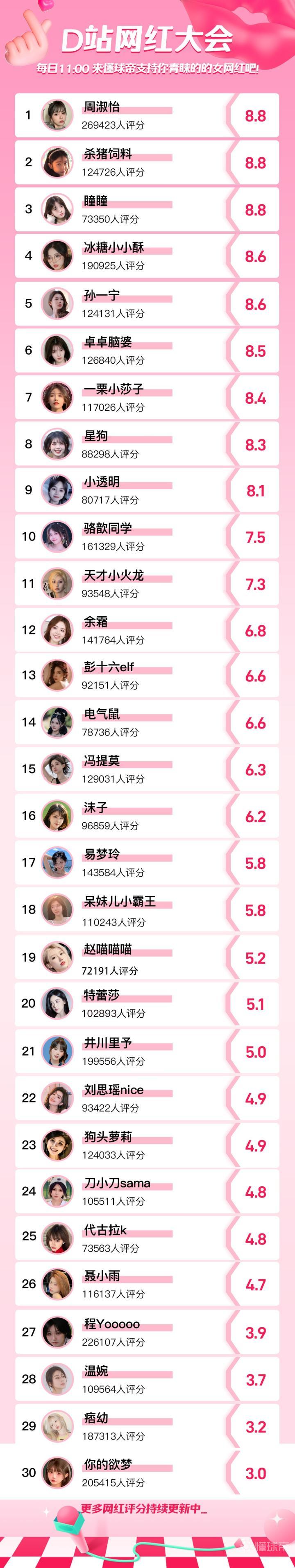 当前我懂老哥对各大网红们的喜爱值如下,谁最让你意外?你最中意的女网红是哪个?欢迎大家在评论区提名,活动君将会根据大家的提名结果判断采纳哦!