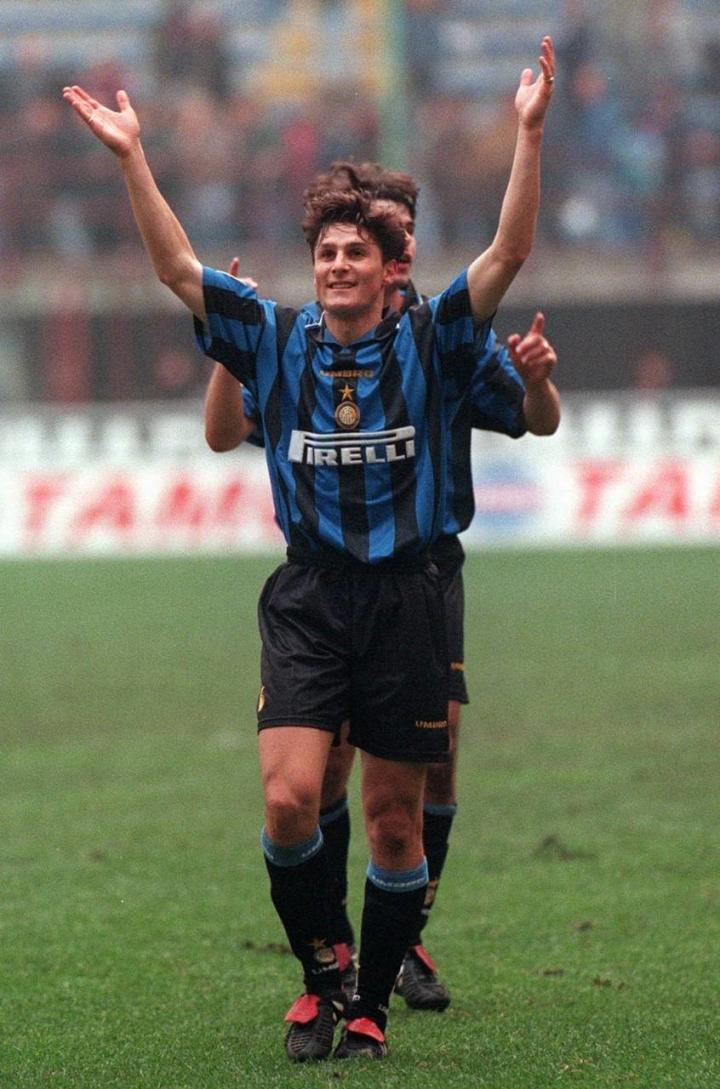 只有一人,在匆匆过客中成为永恒。1995年夏天,一个22岁的阿根廷年轻人来到了国际米兰,他只是阿根廷前锋兰伯特转会的添头,当兰伯特一年后离开,他却让自己的名字成为了蓝黑军团的标志——哈维尔-萨内蒂。萨内蒂也是莫拉蒂入主国米后的首笔引援,老爹与小将,在1995年一起来临。