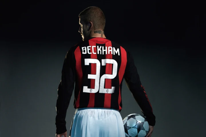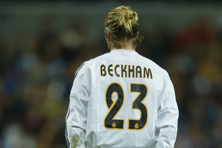在曼联的时候,7号甚至不是他最喜欢的号码。贝克汉姆后来在皇家马德里和洛杉矶银河都穿着23号球衣,然后在AC米兰和巴黎圣日耳曼的职业生涯晚期,他选择了32号。