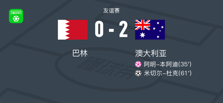北京时间1月6日友谊赛,巴林主场对阵澳大利亚。巴林阿明-本阿迪自摆乌龙。澳大利亚米切尔-杜克破门。最终比分0-2。
