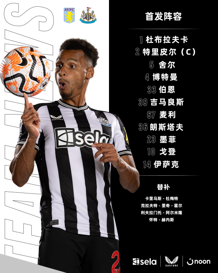 首发出炉🔥阿斯顿维拉 🆚 纽卡斯尔联麦利、墨菲继...