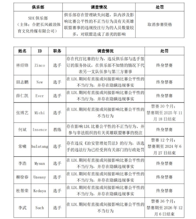 LDL假赌赛和违规处罚阶段性公告