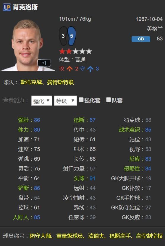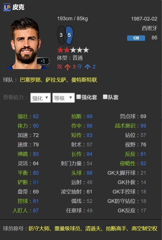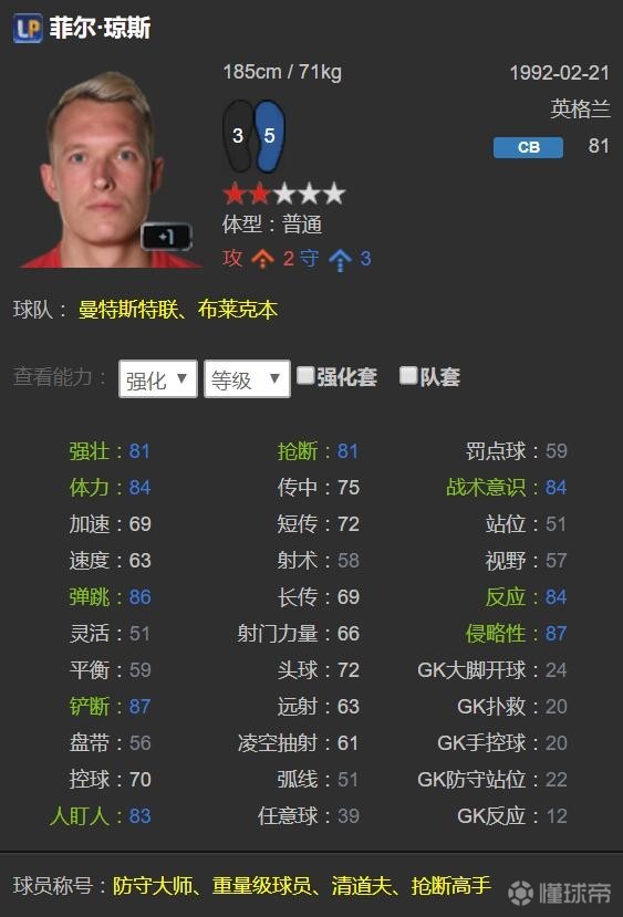 LP琼斯是巅峰卡,速度、反应、拦截等数据都不错,但是曼联中卫位置精英太多,琼斯在曼联出场的机会就很少,其过轻的体重对于现在满大街的传奇卡,对抗方面会明显吃亏。
