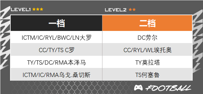 CC赛季C罗上线之后,皇马套的中锋便有了最佳答案。这张CC赛季的断档旗舰卡,双速、射门、盘带等数据都超过了140,速度与力量结合为一体,完全没有了以往C罗赛季卡的顿挫感。而大罗的平民赛季卡在版本更新后略有下降,虽然启动速率依然很快,但没有以往绝对明显的对抗优势,手感方面依然是一档前锋,如果玩家喜欢全能型中锋则可以选择C罗作为单箭头;而更喜欢直塞打法和利用中锋连续变向的话,大罗依然是首发的不二人选