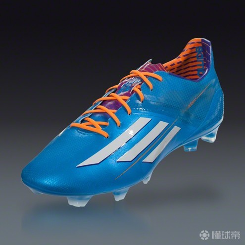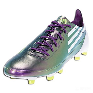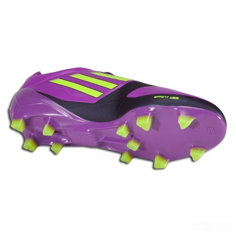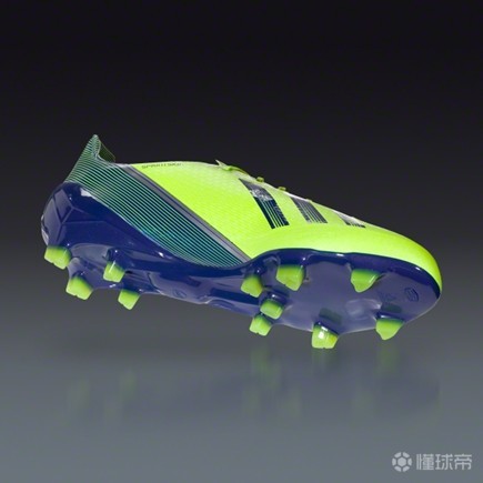 F50 Adizero 4足球鞋在鞋楦设计上,也更加融入了对亚洲使用者考虑的因素。球鞋中间偏后的位置,对宽脚人士而言,包裹性十分出色;而前掌的设计,也是非常人性的出奇得宽,再加上可以贴和双脚的性能,实在是舒适无比。说她是Adidas近年最舒服的足球鞋也毫不为过!F50 adizero4的SprintFrame大底经过了改进,前掌的7颗钉还采用饿了旋转不规则的方式,对于球鞋整体的抓地力以及启动和加速功能的提升,实在是非常显著的。更重要是的,在采用了密度较高的HybridTouch材料鞋面之后,球鞋整体重量依旧被控制在了160克左右,F50 Adizero 4依旧是最轻的足球鞋之一,大底的减重功能实在是功不可没!