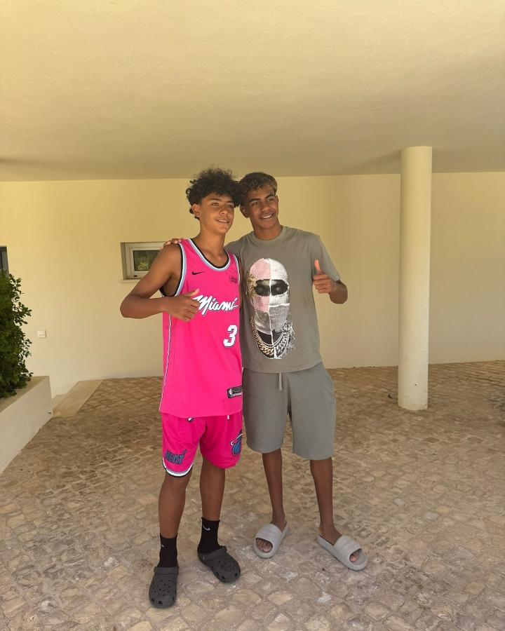 亚马尔父亲在社交媒体晒出亚马尔与C罗大儿子迷你罗的合照。