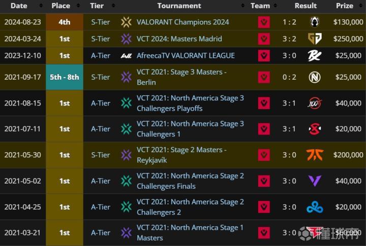 在TenZ效力SEN的四年中,队伍在美洲赛区成为绝对的劲旅,多次在VCT美洲联赛中拿到冠军。在刚刚结束的2024首尔冠军赛中,SEN负于TH止步四强。
