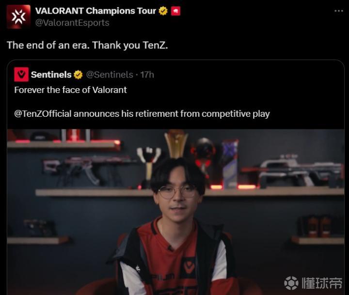 无畏契约赛事官方也向这位传奇选手致敬,写道:一个时代的终结,谢谢你TenZ。