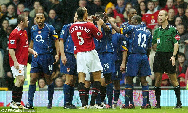 (图)10年前,曼联2-0击败阿森纳,赛后两队爆发了严重的冲突。
