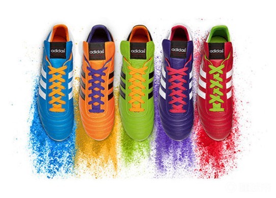 确实进入21世纪后,Adidas Copa Mundial的品质确实有明显的下滑,但是Adidas的德产工厂真的没有拿出令人满意的作品吗?答案也肯定是否定的。尽管经典的黑白双色Copa Mundial在外人看来已经是纯粹“卖情怀”的产品,但是如果有其他配色呢?Copa系列这几十年来也绝非是一尘不变的,早些年出国低调优雅的纯黑和纯白两个配色的Copa Mundial,并且取得了不错的效果。其皮质非常不错,入手价值很高,可惜产量也是很小。而就在近些年,Adidas隆重推出了Copa Mundial的五彩配色套装,下面统称彩色Copa,如上图真的很骚!