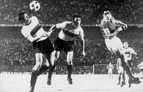 现在,踢后卫的球员们镇守自己的区域、限制对手的进攻区域已经司空见惯,但是在20世纪60年代中期,我们还看不到这样的场景。下半时开始的10分钟,创造出连续两度进球良机的都是意大利俱乐部。雅伊尔在6码的距离射偏,而马佐拉则在接到佩罗的传球之后狠狠地击中了立柱。
