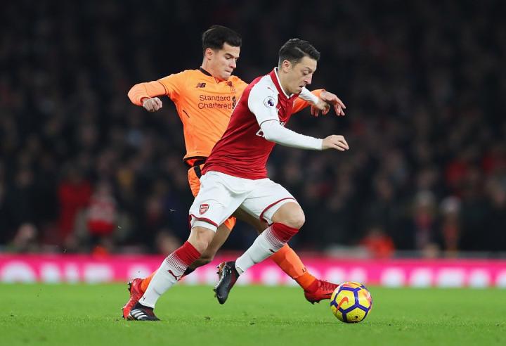 北京时间12月23日凌晨3:45,英超第19轮迎来一场焦点战,阿森纳坐镇酋长球场对阵利物浦。上半场开场不久亨德森伤退,库蒂尼奥为利物浦先拔头筹;下半场菲尔米诺助攻萨拉赫扩大比分,随后风云突变,阿森纳五分钟内连扳三球反超比分,桑切斯、扎卡和厄齐尔先后进球,菲尔米诺扳平比分。最终,阿森纳在这场激情四射的过山车式巅峰对决中3-3战平利物浦。