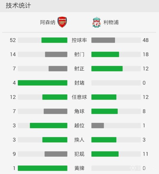 全场比赛结束,阿森纳主场3-3战平利物浦。