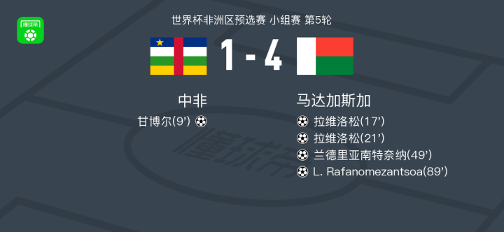 马达加斯加4-1大胜中非,拉维洛松梅开二度,L. Rafanomezantsoa破门