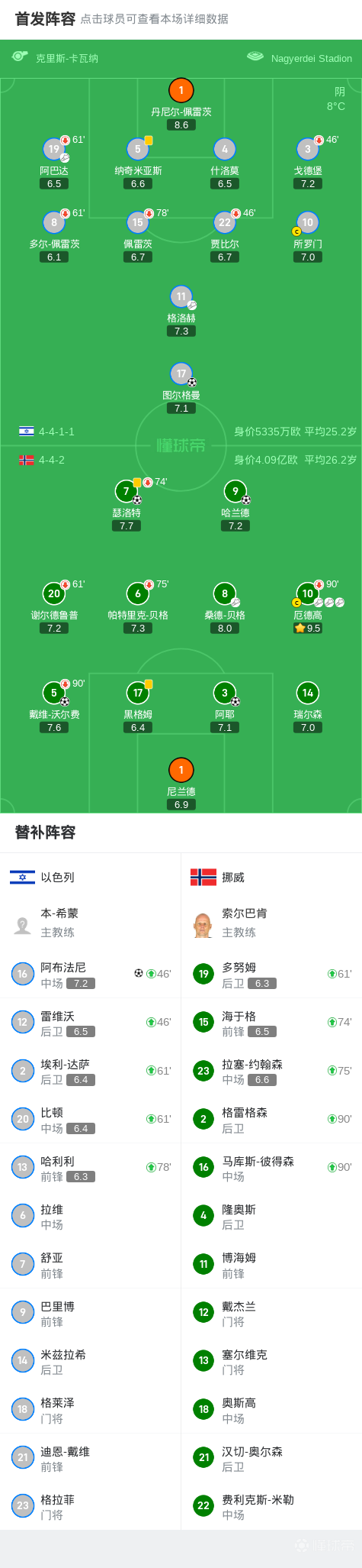 挪威客场4-2以色列,哈兰德建功,瑟洛特破门+两中横梁