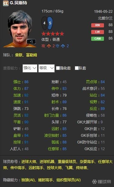 CC赛季贝斯特拥有曼联户口,这张卡总评88,但是目前只有韩服可以使用。