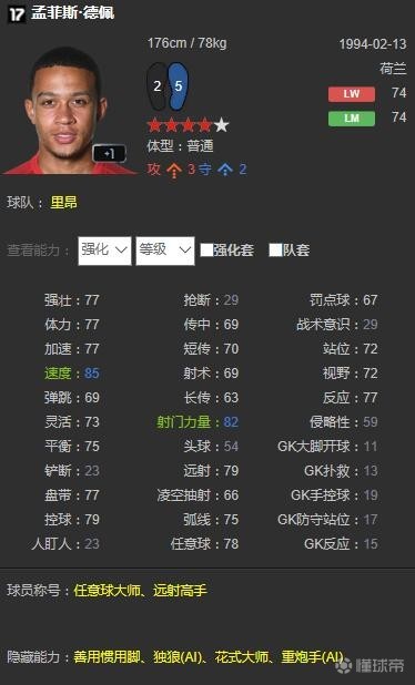 已经转会离开的德佩目前已经没有一张可以供曼联球迷使用的赛季卡了,17赛季德佩,能力74,祝他在未来可以重返梦剧场。