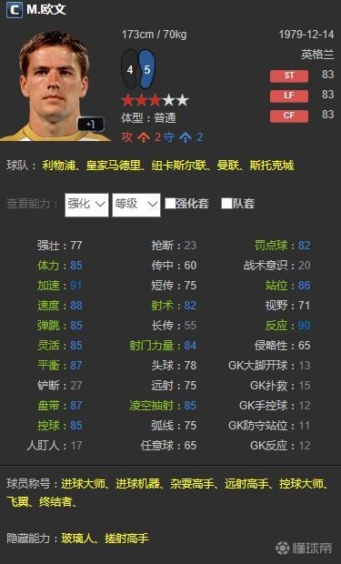 CC欧文拥有曼联户口,总评达到了83,虽然模型一般,高强后依然是一张不错的卡,曼联套玩家可以入手一张。