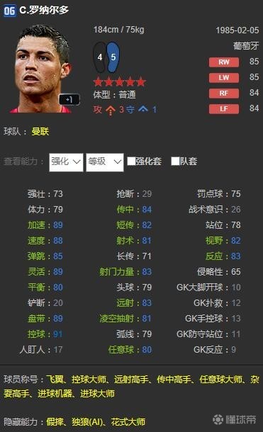 06UC罗虽然不是游戏中的巅峰赛季C罗,但是是拥有曼联单户口的最强赛季卡。