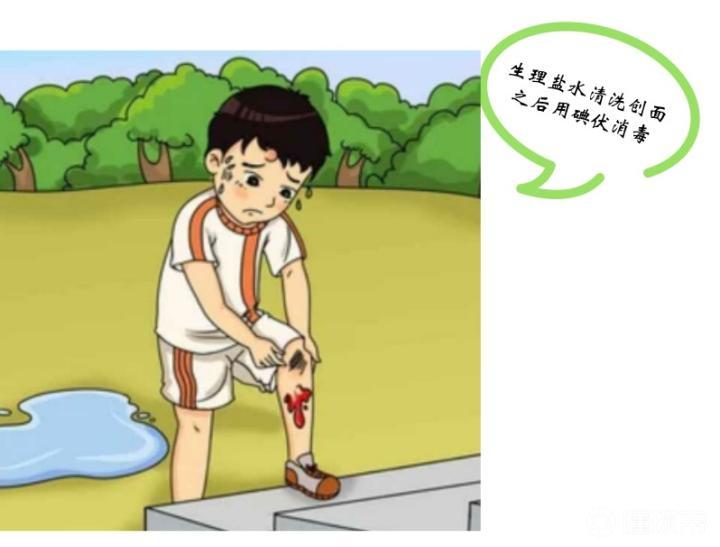 处理方法:如果小面积擦伤先用生理盐水清洗创面之后用碘伏消毒,记住避免包扎,如大面积擦伤用生理盐水清洗创面之后用碘伏消毒马上到医院进一步处理以免伤口感染!