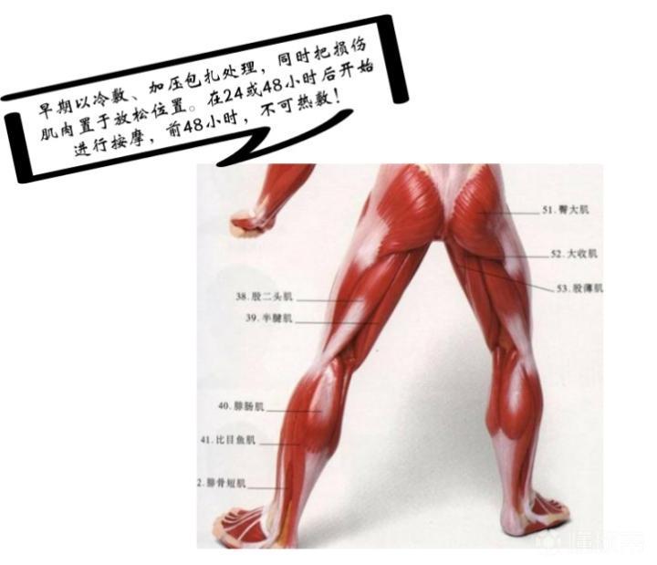 处理方法:肌肉拉伤类似于碰撞肿胀,同属闭合性损伤。早期以冷敷、加压包扎处理,同时把损伤肌肉置于放松位置。视情况,在24或48小时后开始进行按摩,前48小时,不可热敷!