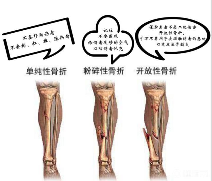 如何处理:第一时间拨打急救电话。不要移动伤者,不要抬、扛、推、滚伤者,不要围观,给伤者足够的空气,以防伤者休克。保护患者不受二次伤害。如果条件允许,可做简单的固定保护措施。耐心等待专业人士到场。如果是开放性骨折,记得千万不要用手去碰触伤者的患处,以免发生骨髓炎。