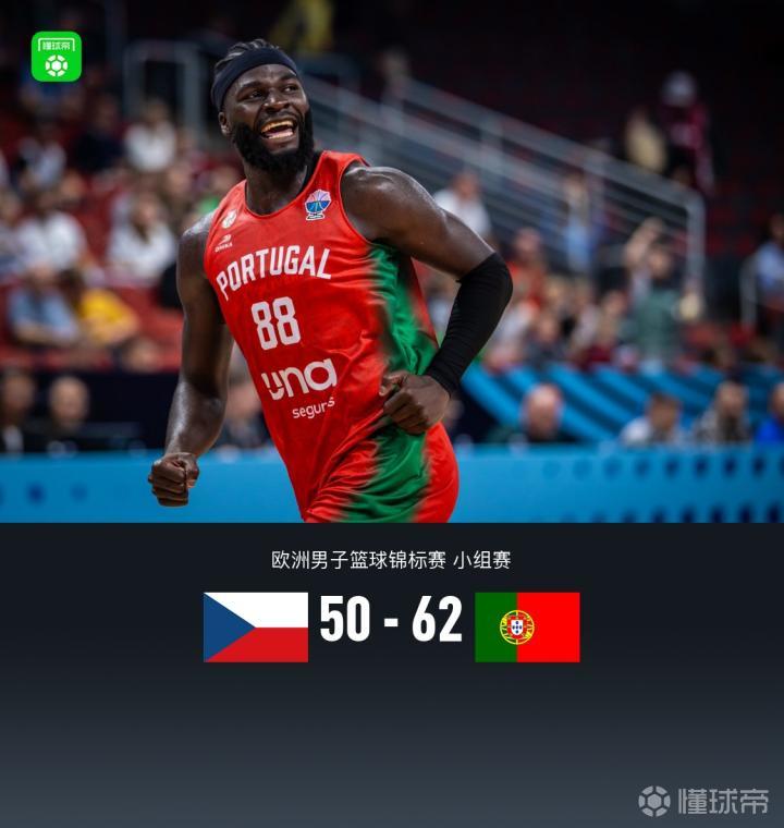 第四节捷克男篮马丁-比特卡拿下6分,葡萄牙男篮奎塔拿下8分,最终捷克男篮50-62不敌葡萄牙男篮