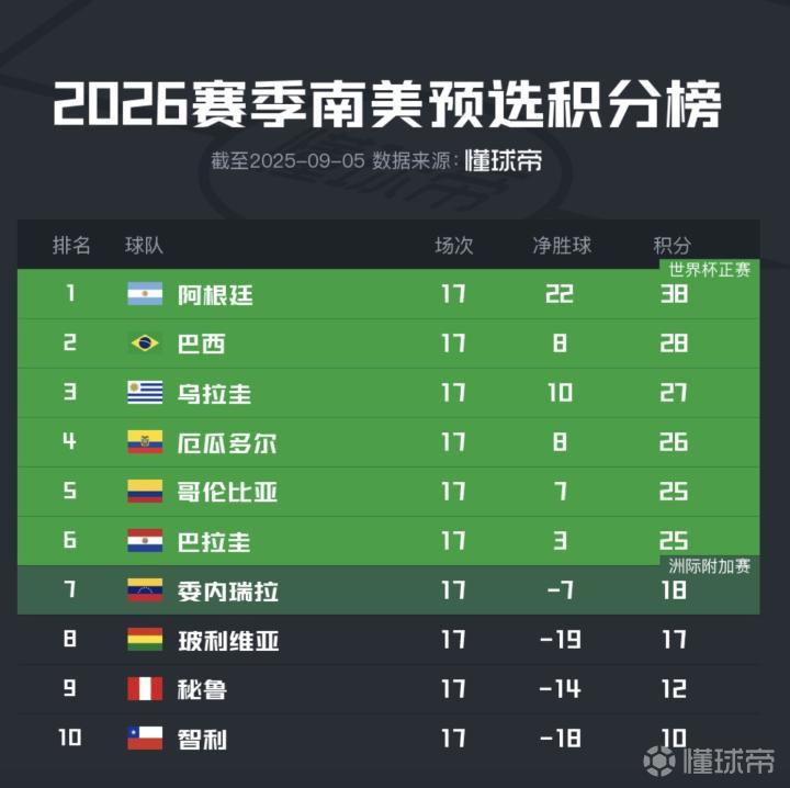 北京时间9月5日,世界杯南美预选赛小组赛第17轮,乌拉圭3-0秘鲁。本场比赛过后,乌拉圭在17轮比赛中取得7胜6平4负,积27分,领先身处洲际附加赛区的委内瑞拉9分,在世预赛还有1轮的情况下,率先晋级世界杯决赛圈。
