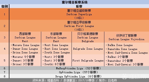 塞尔维亚的联赛系统有八个级别联赛,前五个级别之间存在升降关系,也就是说第五级别的俱乐部理论上可以升级到顶级联赛。至于第六级别是否能升级至第五级别,还有最后三个级别之间是否存在正常升降关系,暂未查询到相关信息。