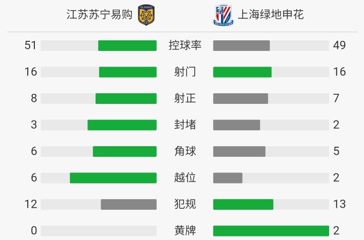 全场比赛结束,江苏苏宁易购主场5-1击败上海绿地申花。
