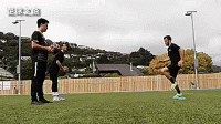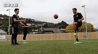 和其它训练一样,在训练时要有创造性,一个队友在距你15-20码的地方传球,另一个防守队员就在你身后进行防守。