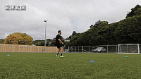 我们要以最少的触球快速控制好球,然后起脚射门。训练时我们要能够用双脚接球并且完成射门。