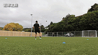 第五个训练是在一个5*10的矩形区域内接长传球,位置距离球门18-25码,一或两个队友在底线附近给我们传球,训练时队友可以贴地抽传,也可以传高空球。