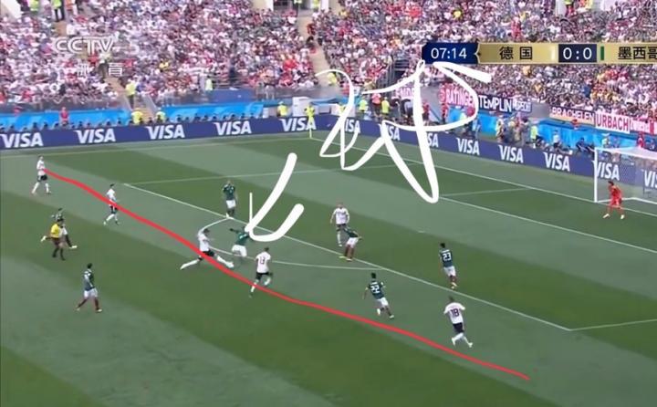 六. 遇到快速反击德国防守缺乏“减速器”和层次。前文仔细分析了德国vs墨西哥7min时的一次防守反击。墨西哥踢的越顺畅,就证明德国的后腰越“纸糊”。这几年有个好后腰非常重要,坎特、卡塞米罗、布教授等,除了具有强大的防、逼、抢能力,同样也可以快速出球,提升进攻的速度。然而德国目前没有合适的人选。