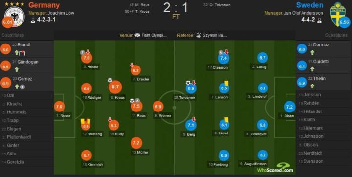 德国vs瑞典赛后评分图