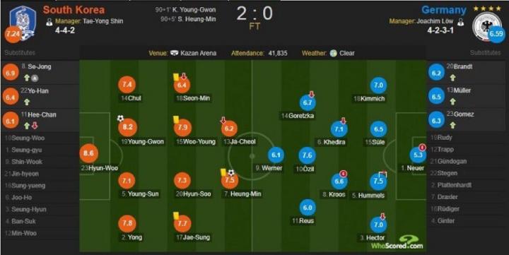 韩国vs德国赛后评分图