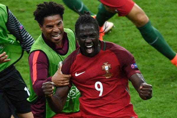 (图)在两年前的欧洲杯决赛,C罗因伤离场,失去了天皇巨星的葡萄牙队顶住压力,名不见经传的替补中锋埃德,意外地“客串”了一把国家英雄