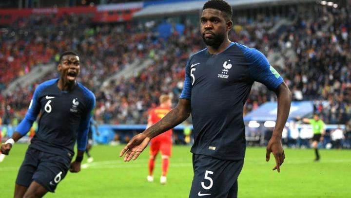 (图)法国与比利时之间进行的半决赛,老辣的前者凭借着中卫乌姆蒂蒂的头球,将对手逼到了绝境