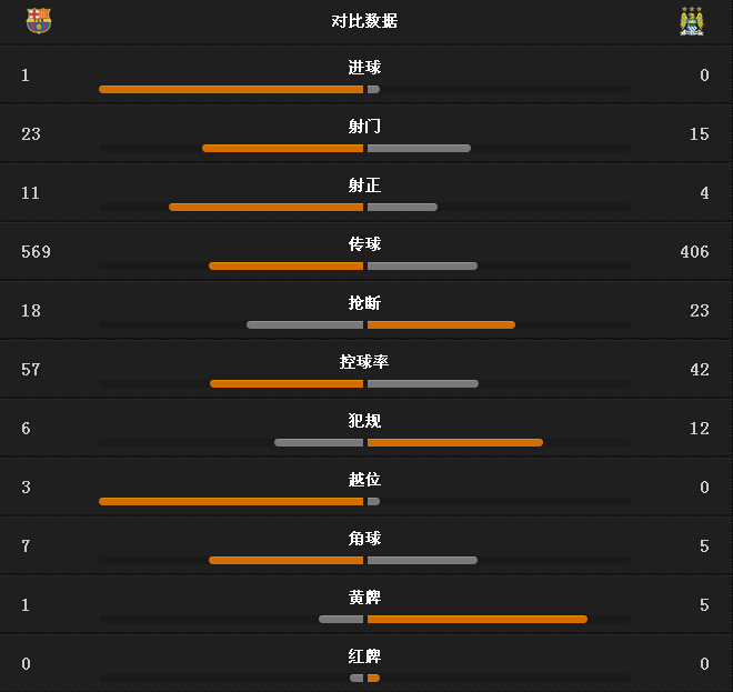 最终,巴塞罗那主场1-0曼城,总比分3-1淘汰曼城晋级八强。