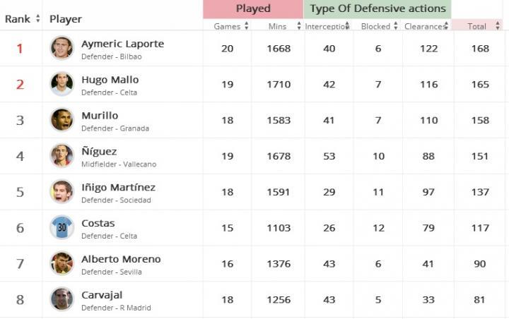 而那个赛季的之后几个月,拉波尔特又迎来了一次大的进步,在新教练和战术体系之下,他们开始向着冠军联赛的资格发起挑战,并完成了一系列的壮举。考虑到拉波尔特的年轻以及伤病 史,这样的表现真是难以置信,那个赛季的表现让小拉足以成为毕尔巴鄂最佳防守队员:高空球预判相当准确、比赛中没有明显失误,更重要地是,他显示出了出色 的领导才能,以及阅读比赛的能力。从下面的数据图我们可以看出,他的抢断、他的铲球以及他的解围都做得恰到好处,也处处体现着他的自信。而全面性也使得他 成为了毕尔巴鄂后场的多面手,逐渐得不可替代,无论是左后卫还是中后卫,他都能出色的完成任务。也许正因为如此,他们才会放心得将奥尔特内特索(Jon Aurtenetxe)租借到塞尔塔。