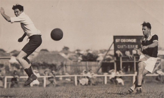 (图)戴特(右)是澳大利亚足球史上最伟大的球员之一,在1937-53年间他攻入了664球