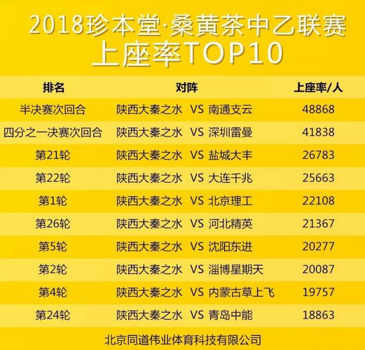 2018中乙联赛上座率TOP10: